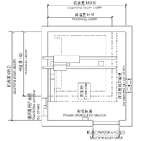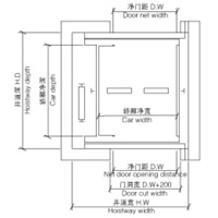 | (kg) Capacidad de Carga Máx. | (m/s) Velocidad Nominal | (mm) Dimensiones de Cabina | D.W (mm) Dimensiones de Puerta | (mm) Dimensiones del hueco | (mm) Dimensiones del cuarto de máquinas | (m) Recorrido máximo | ||||