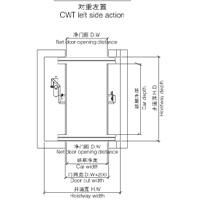 | (kg) Capacidad de Carga Máx. | (m/s) Velocidad Nominal | (mm) Dimensiones de Cabina | D.W (mm) Dimensiones de Puerta | (mm) Dimensiones del hueco | Proporción de tracción | |||