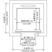 | Cantidad de Pasajeros Máx. | (kg) Capacidad Nominal | (m/s) Velocidad Nominal | (mm) Dimensiones de la Cabina | (mm) Dimensiones de la Puerta D.W×D.H | (mm) Dimensiones del Hueco | (mm) Dimensiones del Cuarto de Máquinas | (m) Recorrido Máximo | |||